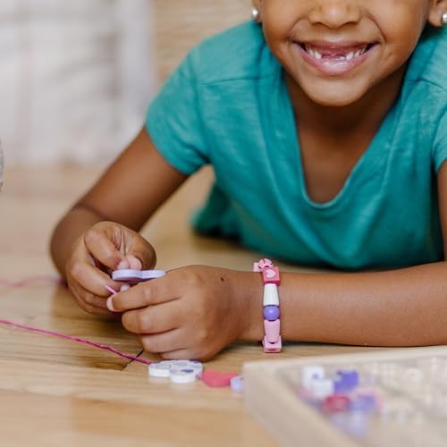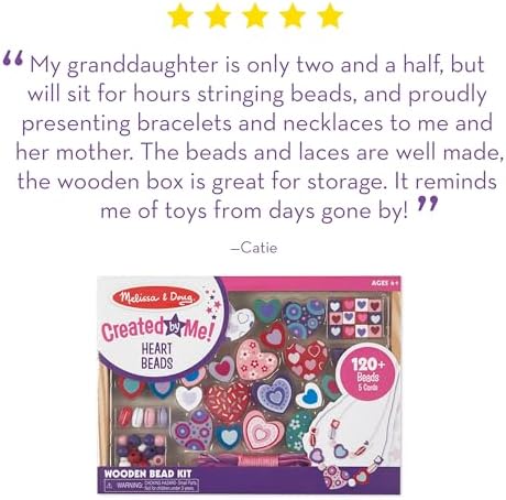 **Melissa & Doug Created by Me! Heart Beads Wooden Bead Kit – 120+ Beads and 5 Cords for Jewelry-Making**