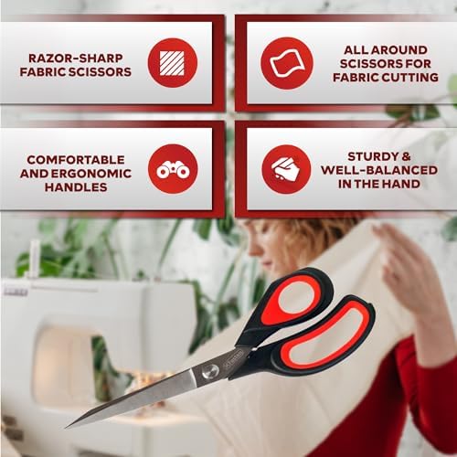 XFasten Heavy-Duty Professional Tailor Scissors, 9.5-Inch Heavy Duty Ultra-sharp Dressmaker’s Scissors Shears for Fabric Cutting | Sewing scissors for Fabric